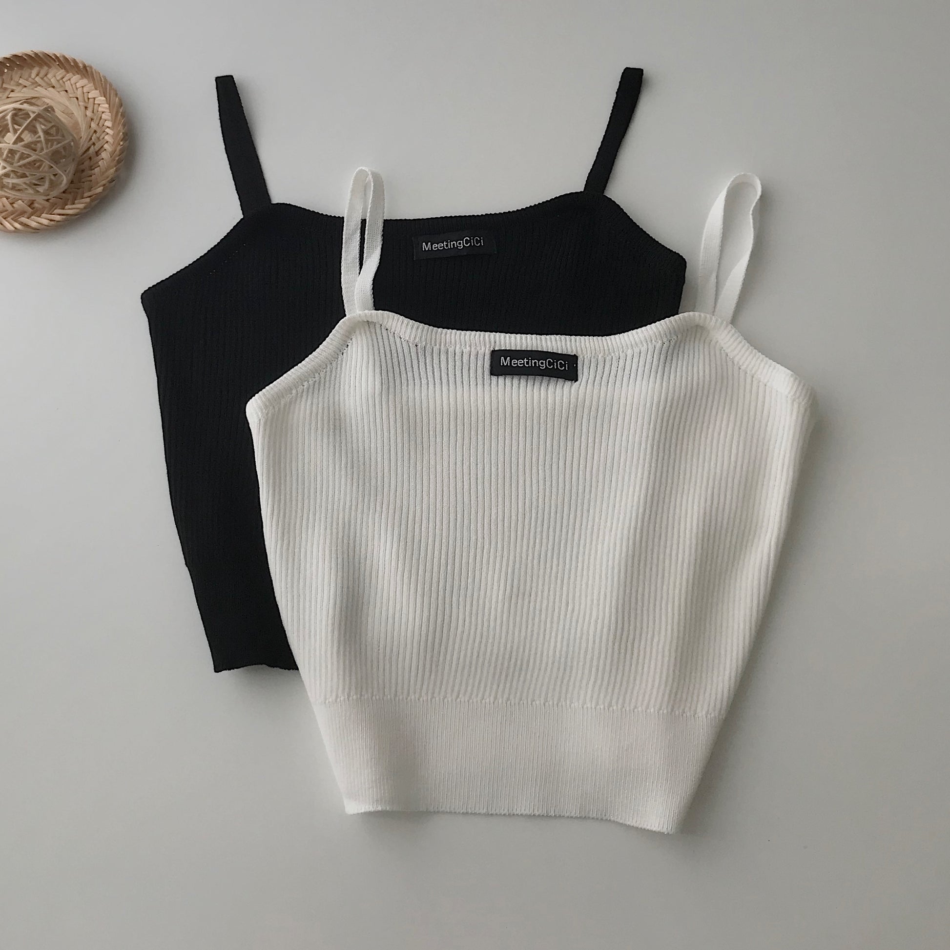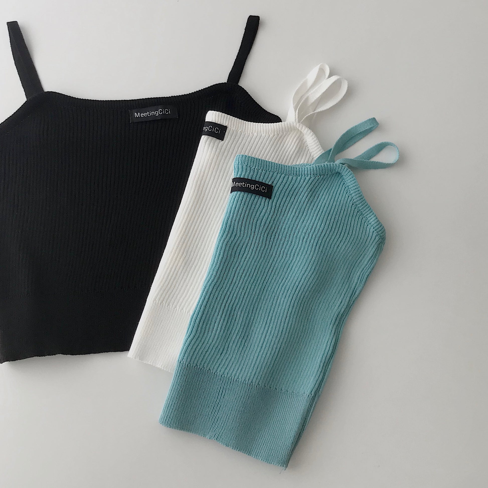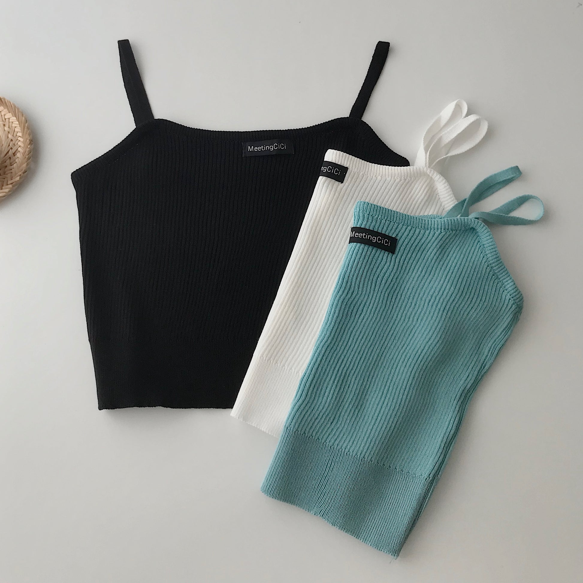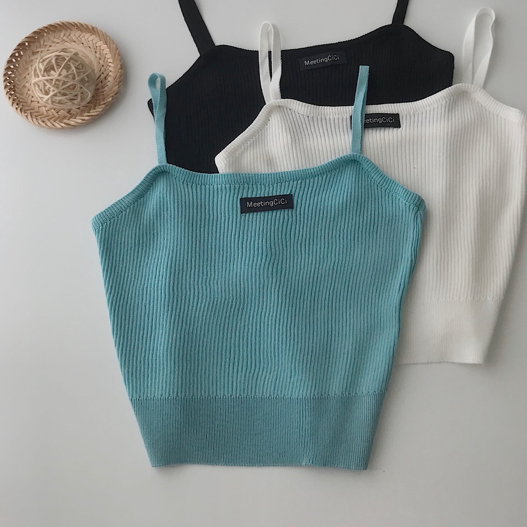 Áo 2 Dây Croptop Nữ MIMI Chất Dệt Gân Mềm Mịn 3 Màu Đen Trắng Xanh Phối Đồ Dạo Phố Sexy 10335